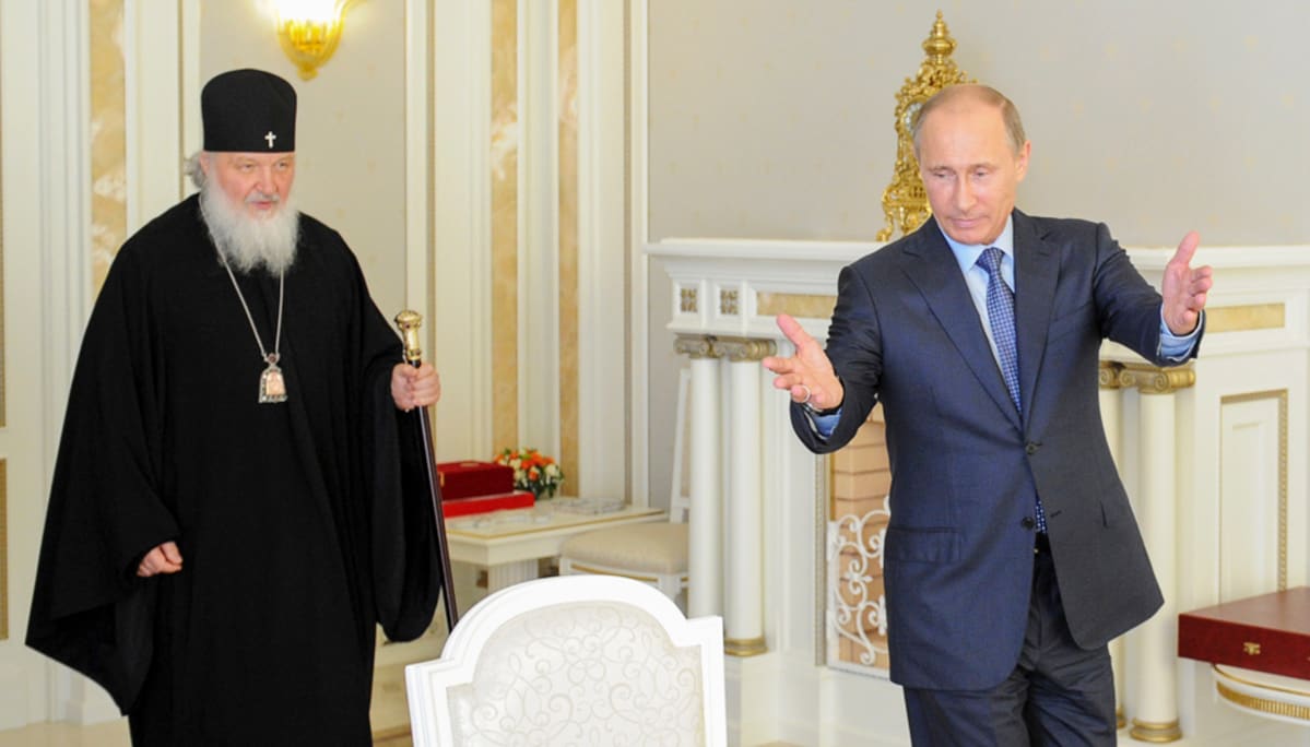Kuvateksti: "Venäjän ortodoksisen kirkon patriarkka Kirill ja maan presidentti Vladimir Putin toukokuussa 2013."